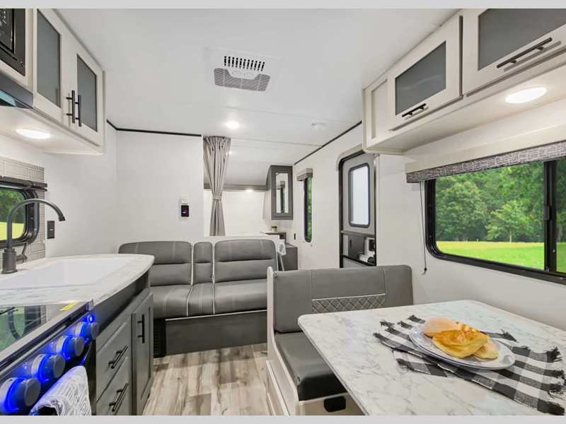 Sleeps 3 Slides 1 Furnace BTU 30000 btu Available Beds Queen Refrigerator Size 10 cu ft Cooktop Burners 3 Number of Awnings 1 Water Heater Type Tankless On Demand AC BTU 15000 btu Awning Info 18' Axle Count 2 Shower Type Standard Similar Floorplans
