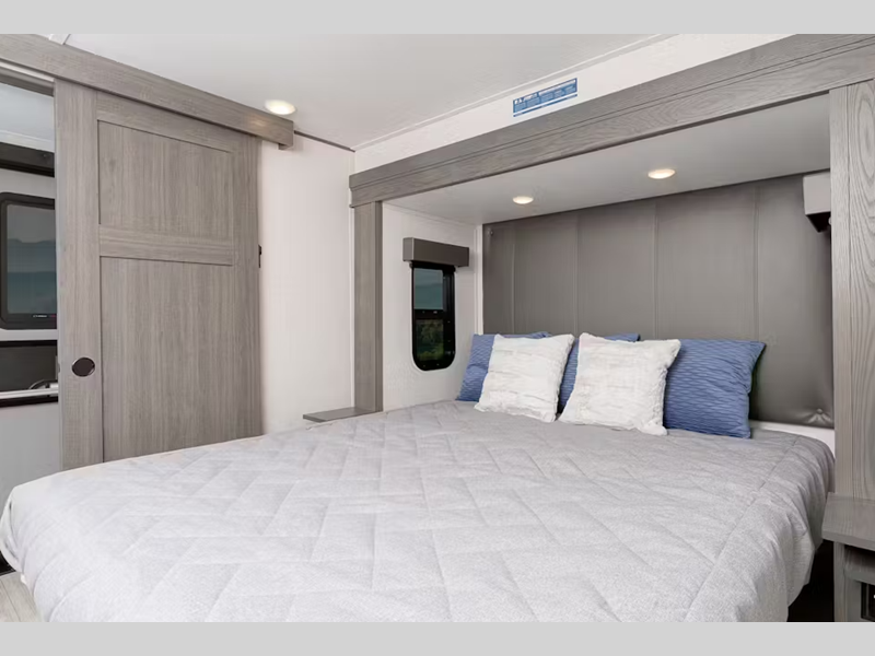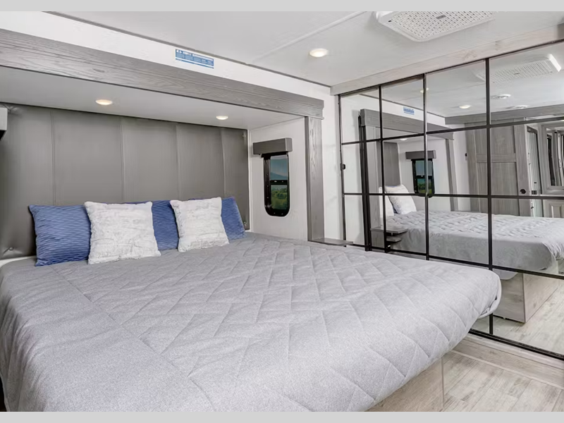 The wide body construction features 6'10" tall Summit Slides on all models plus an 8' 4" width that will accommodate your time together in a spacious interior thanks to multiple slides, a master bedroom with a king bed and prep for a stackable washer/dryer. You will appreciate the solid surface countertops, JBL Sound System, and dual, and Quiet Cool™ air conditioners with Whisper Quiet Technology™ to keep your entire unit comfortable both day and night.