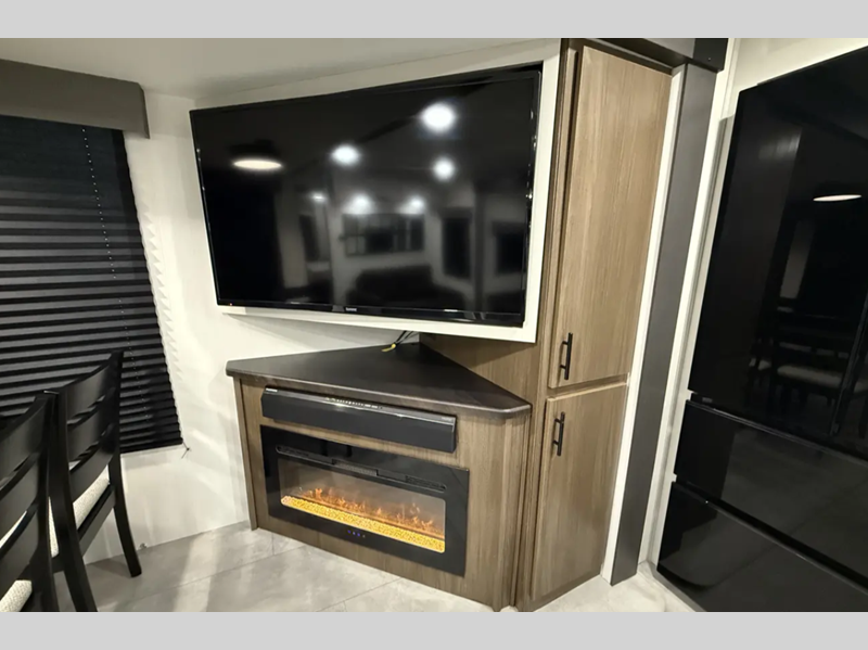 The exterior comes outfitted with welded aluminum framing, power awnings with LED lights, a fully enclosed underbelly, high density foam block insulation, Tufflex PVC Roof, and a tankless water heater. There are quite a few appliances that you'll find yourself using just about every day, like the Smart TVs, the soundbar, and 30" microwave oven for all of your cooking needs, plus two 15,000 BTU air conditioners so your inside temperature can keep your comfortable both day and night.