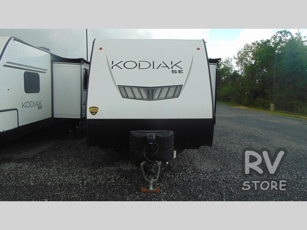 With any Kodiak SE travel trailer by Dutchmen RV, you can experience comfort while camping at a moment's notice. Each trailer includes features such as power front and rear stabilizer jacks, a power tongue jack making set-up easy, and a power awning with LED light. Each model is pet-friendly with the carpet-free slide out floor, tile flooring, and the pet leash D-ring. You can enjoy the wireless Bluetooth speaker, the LED interior and exterior lighting, and the 80" interior height. From the floor structure which includes a fully enclosed underbelly to the laminated walls with aluminum frame and block foam insulation, any Kodiak SE is built lightweight and ready for adventure!