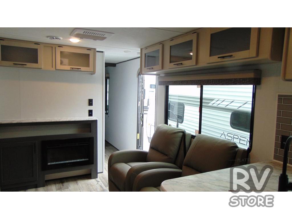When you're ready for a camping experience of a lifetime, check out this Aspen Trail travel trailer! The rear kitchen makes it easier for you to move around and create your best meals, and then you can comfortably enjoy those meals at the booth dinette which can transform into an extra sleeping space when needed. When mother nature rains on your parade, you can relax inside by the LED fireplace with electric heat on either one of the two recliner chairs or lie down on the jackknife sofa with footrest within the large slide. The full bathroom makes it easy for everyone to stay clean without using the camp's facilities!