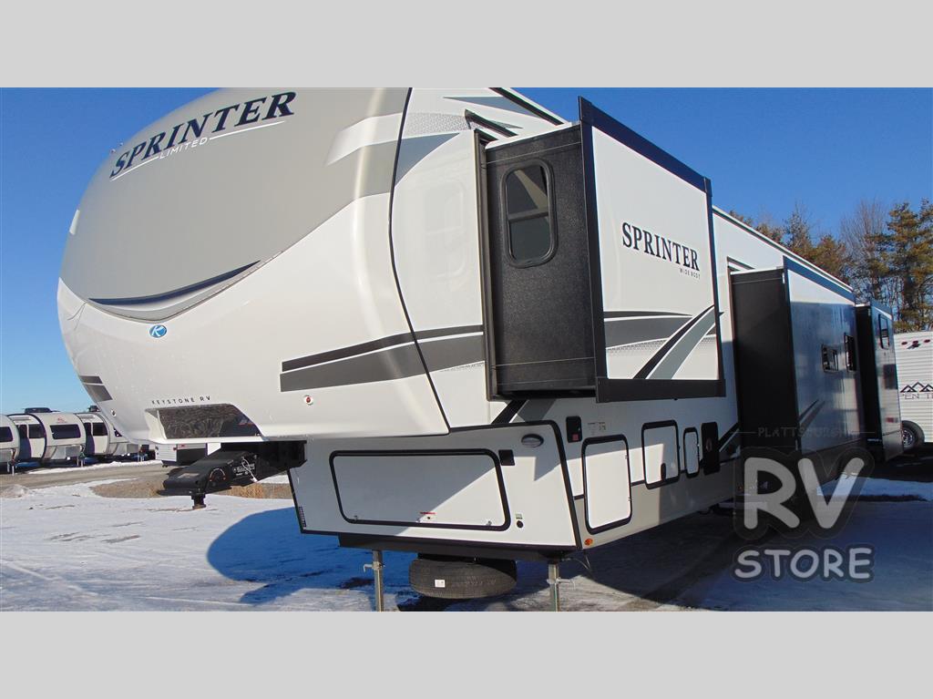 Nothing else says "Camping Made Easy" quite like the Keystone Sprinter Limited fifth wheels and travel trailers do! These luxe RVs offer a premium experience that you'll be dying to be a part of. With unmatched technology, comfort, functionality, and quality, it's no wonder the Sprinter Limited is on everyone's wish list. You can stretch out and stay a while with the 100" wide-body frame with full-width outriggers, and the thermal package keeps you comfortable even when the weather is extreme. Some of the deluxe amenities that have been included on the Sprinter Limited are the Thomas Payne luxury collection furniture, crown molding, Congoleum vinyl flooring with one-piece Dyna Span marine-grade decking, solid-surface countertops, a deep single-basin stainless steel industrial sink, and gas struts for under-bed storage. Each model has also been prepped for 4G LTE and Wi-Fi to keep you up-to-date in the modern world.