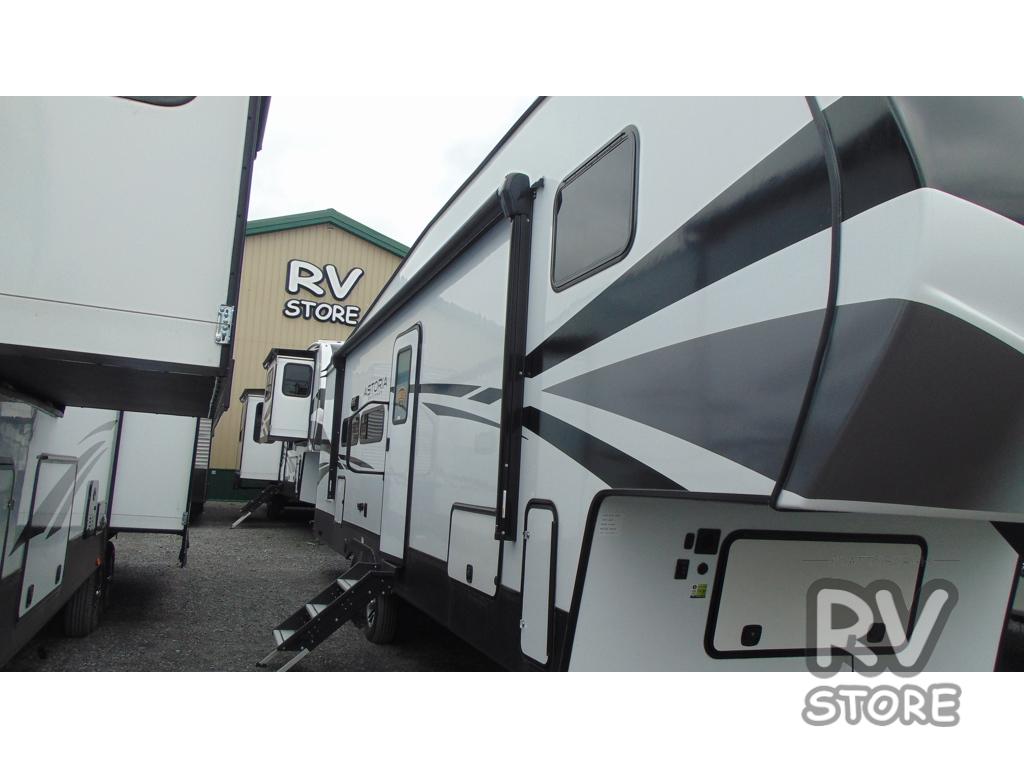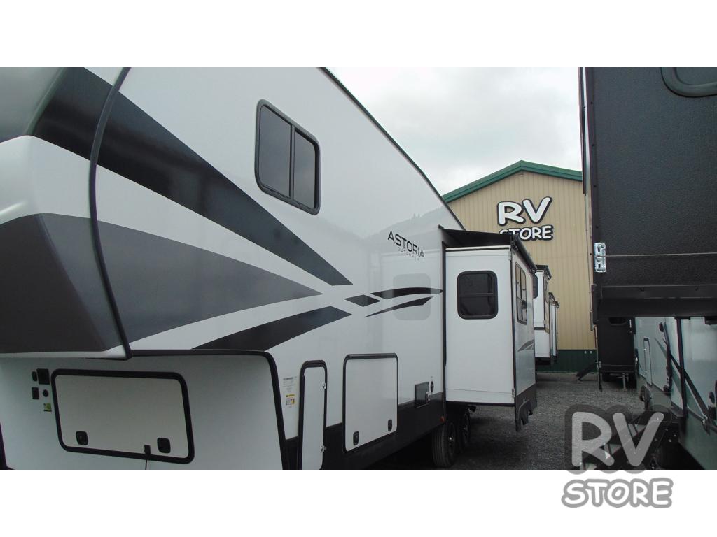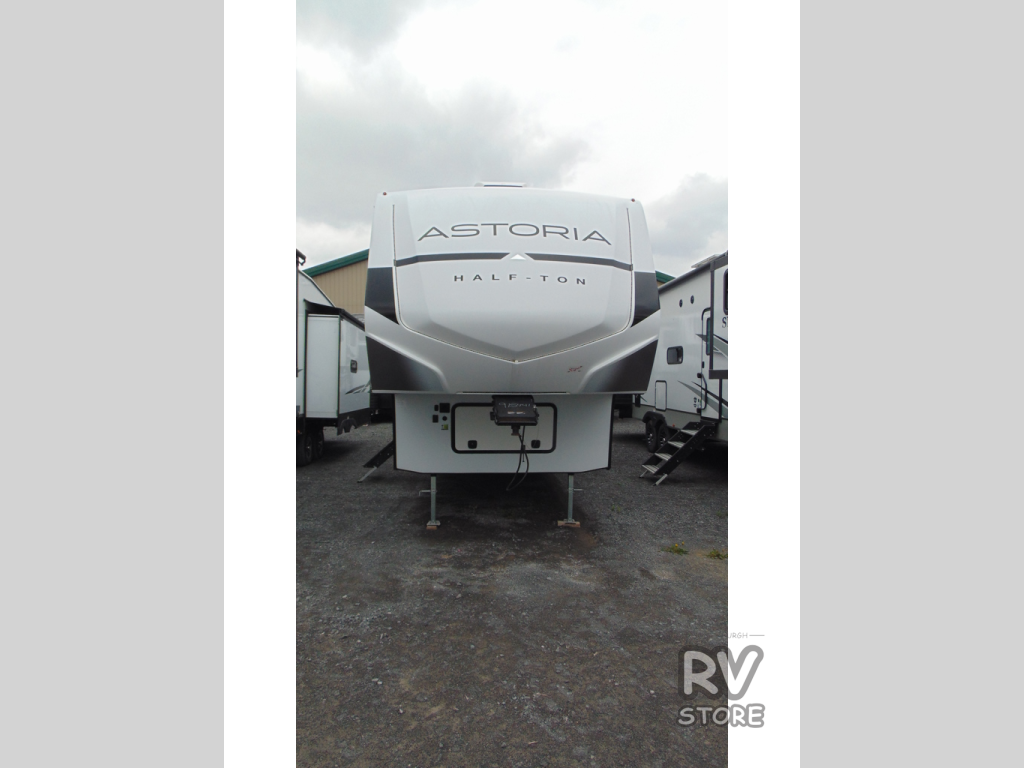 Each one of these Dutchmen RV Astoria Half-Ton fifth wheels feature a fiberglass exterior for added durability and an All Weather Thermal Package so you can camp all year long! There are also MorRyde Solid entry steps, slam latch baggage doors, and many more exterior conveniences. You'll enjoy a 200W solar panel for off-grid capabilities, an X1 back up camera for easy parking, and a power awning with LED lights for an inviting outdoor space. The interior is designed with bathroom backsplash, night shades throughout the living area, and Thomas Payne furniture collection. The on-demand tankless water heater will provide endless hot showers, and the dual ducted A/C will keep you cool all summer long.