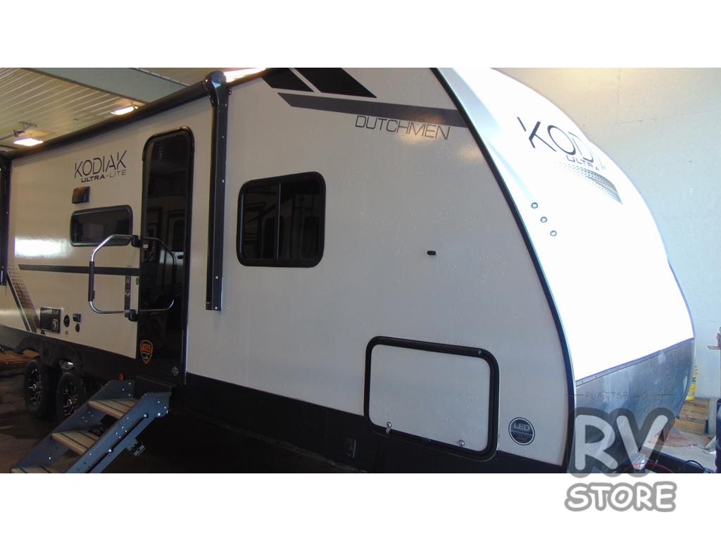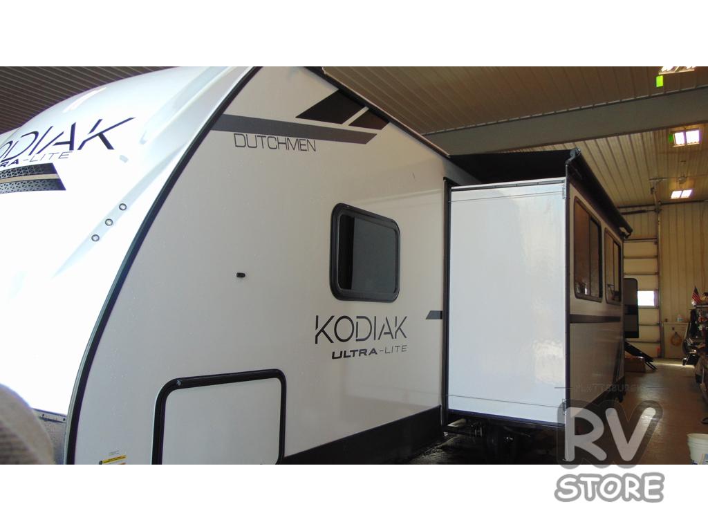 With any Kodiak SE travel trailer by Dutchmen RV, you can experience comfort while camping at a moment's notice. Each trailer includes features such as power front and rear stabilizer jacks and a power tongue jack which makes set-up easy, and a power awning with LED light for convenient outdoor living. Each model features HyperDeck flooring, and carpet free slides making them easy to clean. From the floor structure which includes a fully enclosed underbelly to the laminated walls with aluminum frame with block foam insulation, any Kodiak SE is built lightweight and ready for adventure!