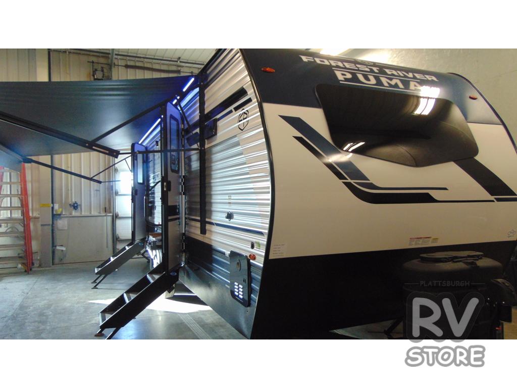 If you're looking for family-fun adventures then you need one of these Palomino Puma fifth wheels or travel trailers! They are built rugged, easy to tow, and jam packed with features. The Darco wrapped underbelly will protect your units vitals through every season and the AlphaPly roofing membrane covers it. They also have new aluminum wheels and a powder coated steel I-beam frame. Inside, the Congoleum linoleum will be easy to keep clean, and the night roller shades will provide privacy when it's time to turn in. You'll also enjoy an electric awning with an LED light strip plus an AM/FM/Bluetooth stereo and two outside speakers to keep the party going!