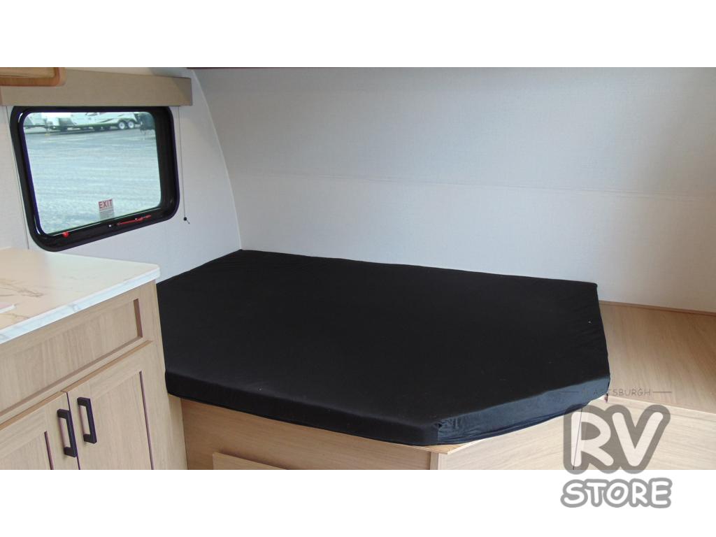 This lightweight unit may surprise you with the comfort found inside. You can sleep comfortably each night on the front full-size bed with an overhead cabinet, and there is a booth dinette that can sleep one to two more. A two-burner cooktop and microwave oven will let you make breakfast for everyone in the morning, and the private bath inside means you won't have to use the camp's facilities to get ready.