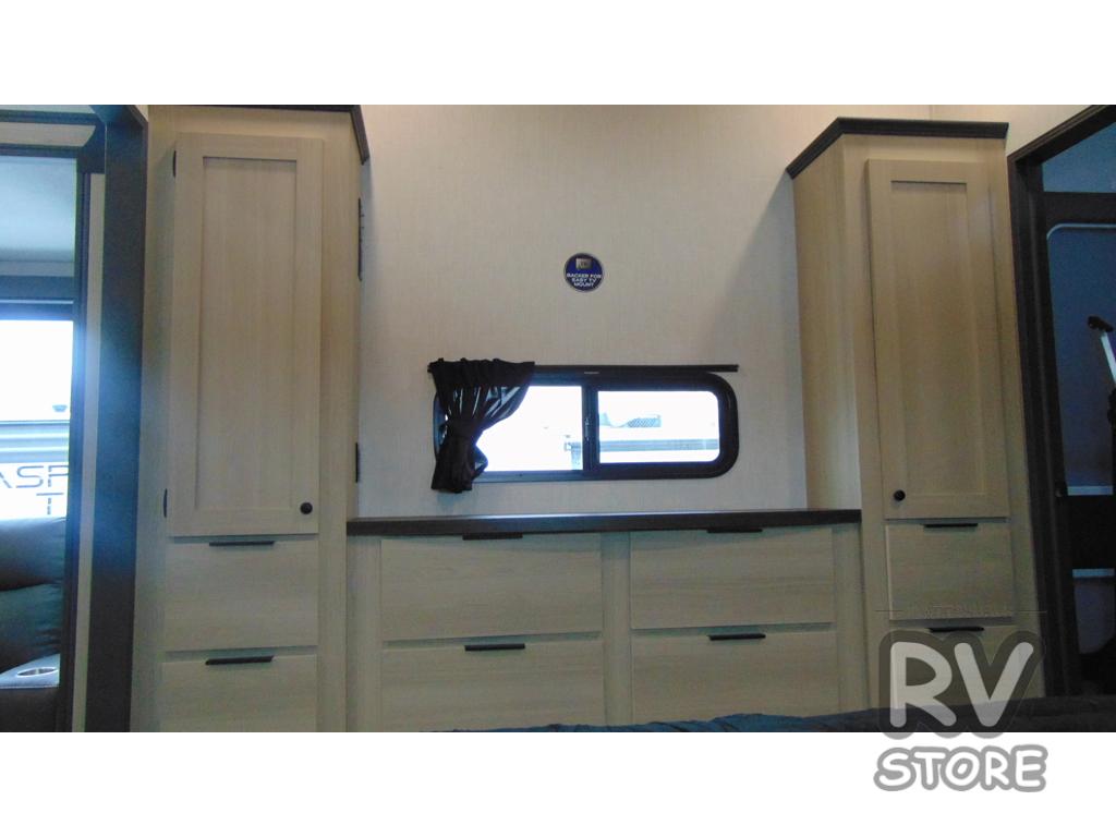 If you're ready for fun, look for further than this dual entry Cardinal fifth wheel! It will be so easy to travel with friends and family since there is a master bedroom with a 66" x 80" king bed and a full rear bath, plus a front bunkhouse suite with bunk beds, a full-size bed, and a second full bath! The chef of your crew can whip up breakfast in the morning on the 21" 2-in-1 oven range or in the over-the-range microwave. There is also a 16-cu. ft. 12V refrigerator and walk-in pantry for food storage! The super sofa slide out sits across from the entertainment center and fireplace for easy viewing in the evening, or you may just find yourselves outdoors visiting with campground neighbors!