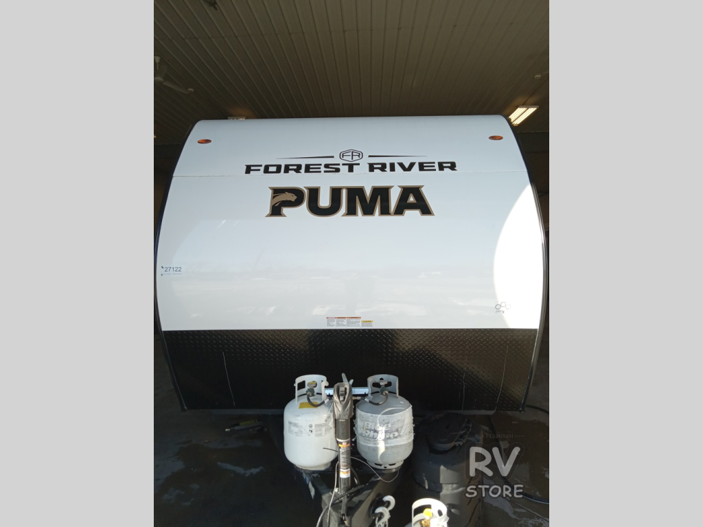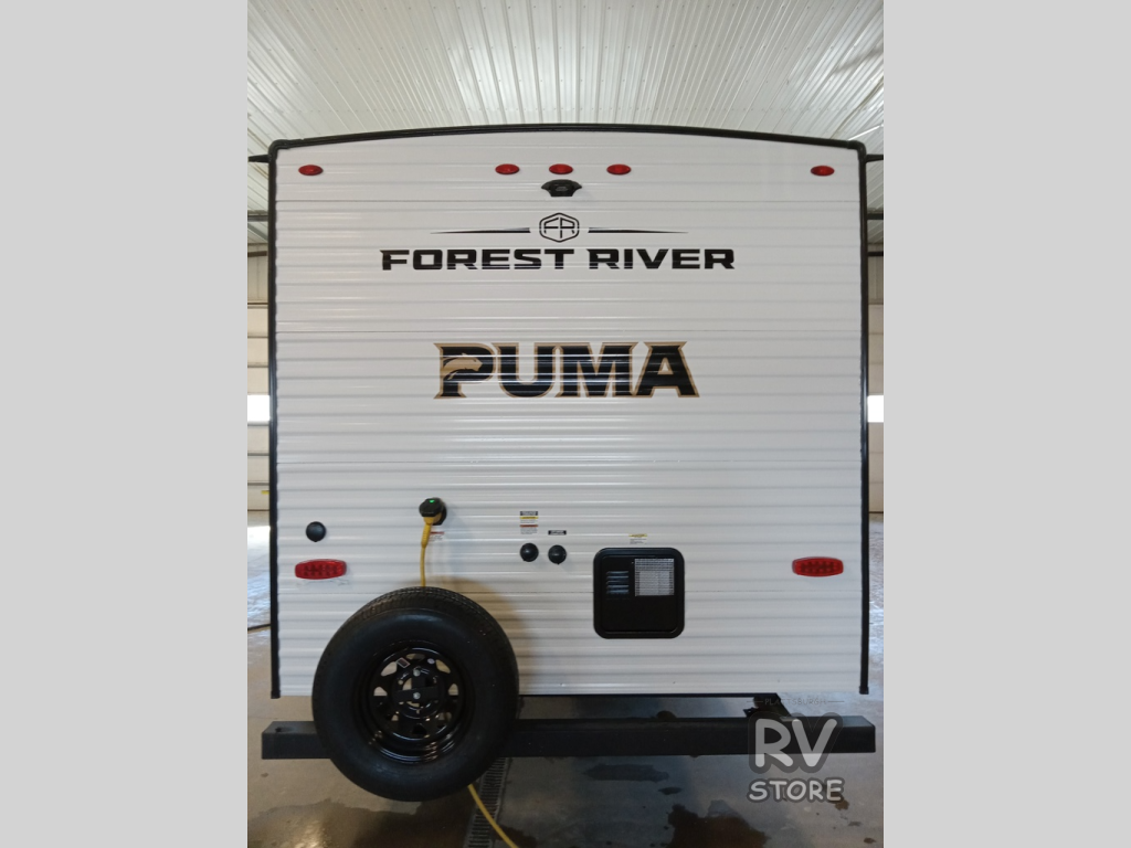 The Puma Camping Edition by Forest River offer an affordable travel trailer for rookie campers or seasoned RVers! They are built with 5/8" tongue and groove plywood flooring and a front diamond plate for added protection. There are also exterior magnetic baggage door latches, back up camera prep, a battery disconnect. Head inside to find Thermofoil countertops with a smooth drop edge, bedroom USB ports and outlets, and pleated shades in the living room.