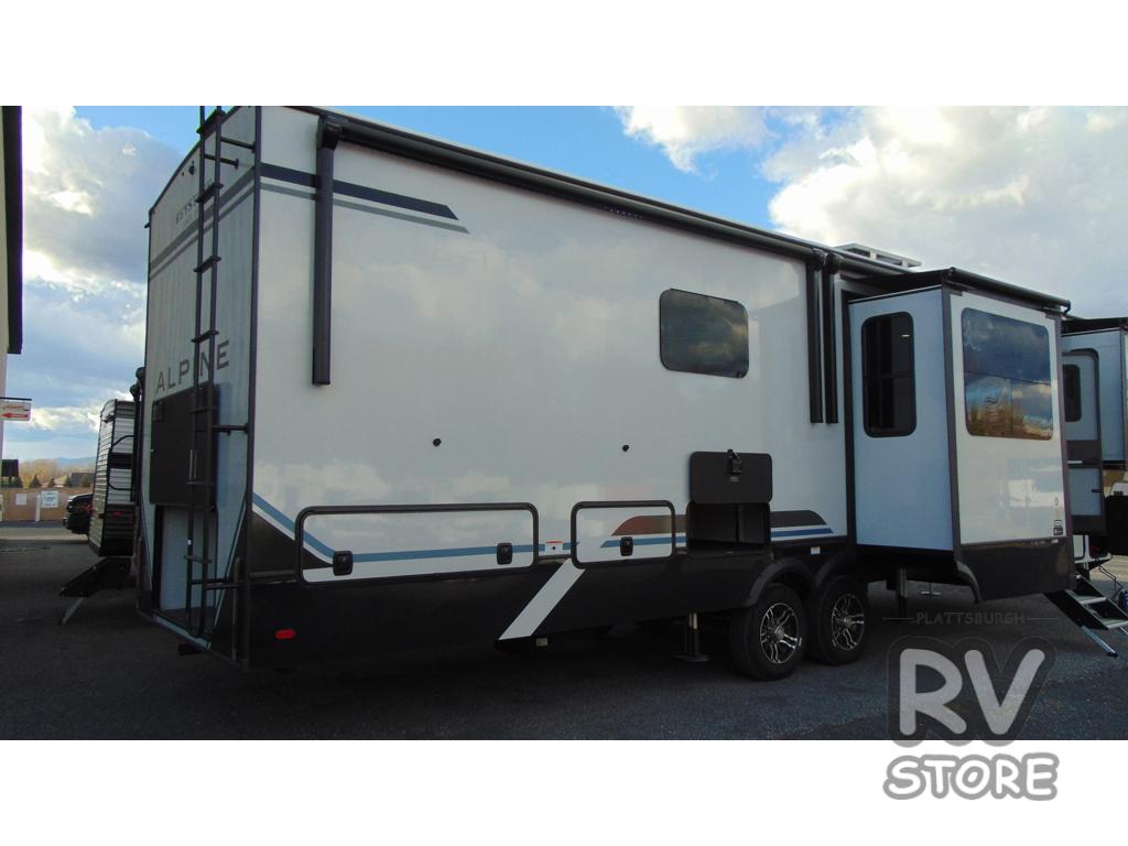 Luxury is not an option, it is a standard with each one of these Keystone RV Alpine fifth wheels! A 8' 4" wide body construction will create an open, residential feeling, and cutting-edge technology will provide a hassle-free camping experience. The Tru-Fit slide construction is more durable and minimizes motor structural stress, as well as resists leaking, and the Blade Pure airflow system provides residential comfort with its high-performance. Each fifth wheel includes designer flooring throughout, stunning solid wood cabinet doors, luxurious crown molding, and solid surface countertops in the kitchen. The exterior also includes an outside shower with hot and cold water, Lippert strut assisted SolidSteps, Hitch Vision with LED lighting, and many more conveniences!