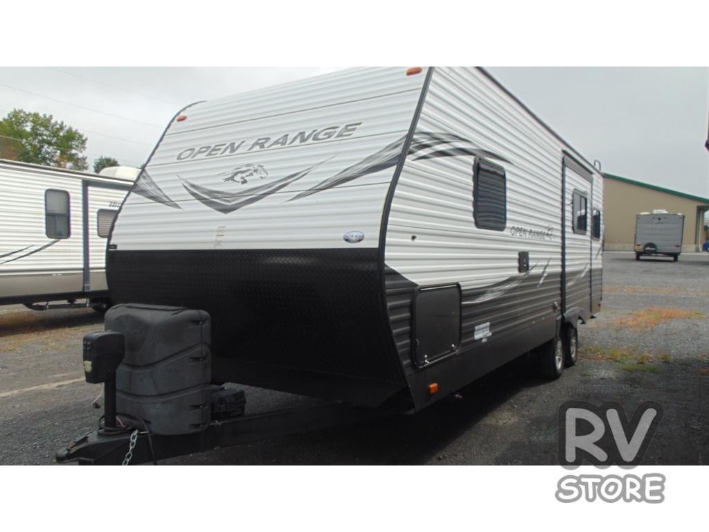 Each Open Range Conventional travel trailer by Highland Ridge RV provides affordable cost, plus several standard features you will appreciate when camping. Outside you'll appreciate the docking station that includes the black tank flush, hot and cold sprayer, plus cable/satellite hookups and water inlets. The front black diamond plate protects your RV from the road elements, and the nitro filled tires allows for better fuel handling and fuel mileage. Inside, Congoleum Designer Carefree resilient sheet flooring resist scuffs and scratches, and the stainless steel appliances make it feel more like home. These models are all but conventional! Choose your favorite floorplan today and begin your uncharted voyage!