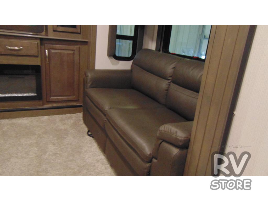 With any Keystone Cougar fifth wheel and toy hauler you will experience the MaxTurn technology which enables you to maneuver easily into the campsite, and the electric four-point auto leveling system makes it easy to set up too! The heavy duty axles with never-adjust brakes and Road Armor™ shock absorbing equalizer makes for a smooth trip. With a Climate Guard protection package and 12V electric heat pads on all holding tanks, you can camp anytime of the year. The 5/8" one-piece DynaSpan® flooring is easy to clean so live out your dreams, choose your favorite Cougar today!