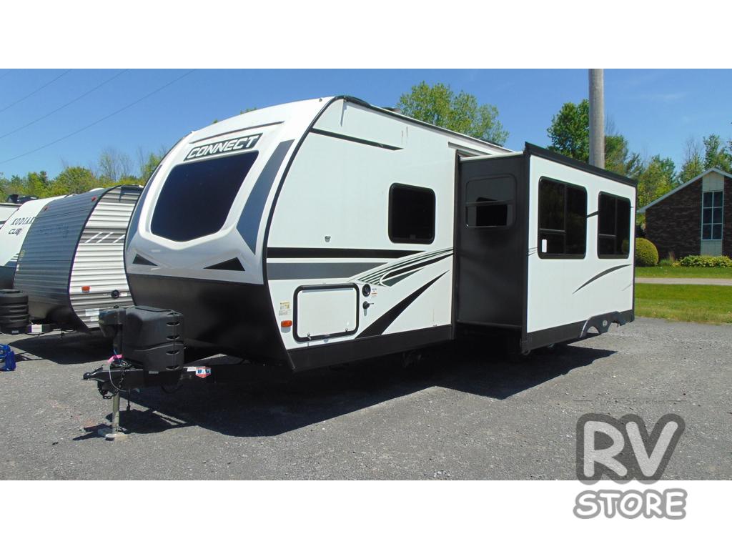 Whether you're a hiker, biker, or kayaker, you will appreciate this Connect travel trailer for the way it connects you to the great outdoors! You won't have to worry about a thing because this trailer will take care of all of your needs with its king-size bed in the private bedroom, its large slide with 70" sofa and booth dinette, its full rear bathroom with 30" x 36" shower and skylight, and its L-shaped kitchen with ample amenities. There is also an entertainment center in front of the sofa for many evenings of enjoyment, and right next to the main entry door is a walk-in pantry with coat hooks so that you can keep your keys and jackets right where you want them.