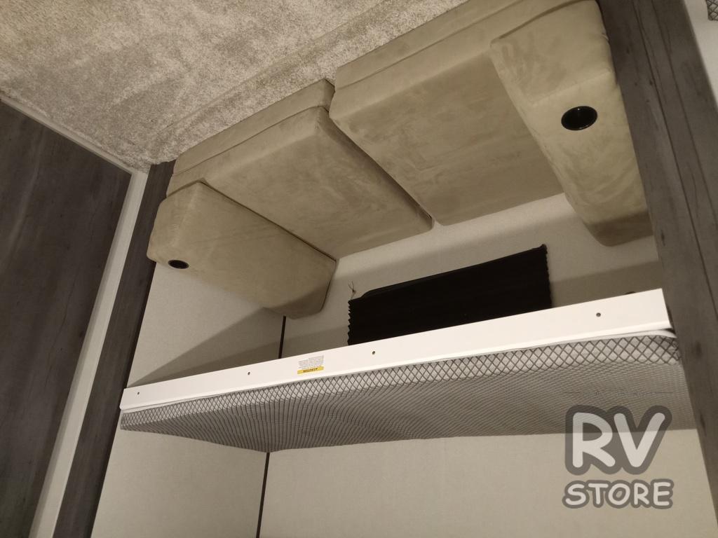 You will be quite impressed by the large private bunkhouse on this Hideout travel trailer! This bunkhouse has a slide out for more space, and it also provides you with a 32" x 74" upper bunk above a cube bunk, a 28" x 66" bunk, a 39" x 74" bunk, a wardrobe, and a toy chest. Now your kids can play all day and store their toys when it's time for bed. The full bathroom is located right next to the bunkhouse for easy access at night, and the bathroom also contains the second exterior entry door. The main living area is full of great features as well with a large slide, a jackknife sofa, central vacuum, and it is prepped for a TV and/or fireplace if you choose to add either of those items.  You can also choose to add optional tri-fold sleeper sofa in place of the jackknife sofa.